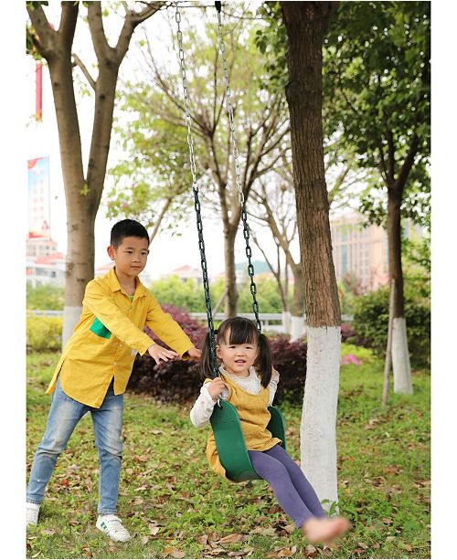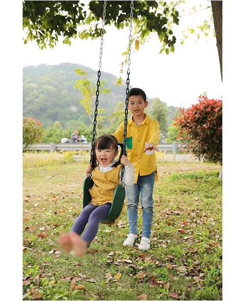 The playberg flexible green belt swing has a generously sized seat and sturdy plastic coated chains. The swing belt with chain features a heavy duty swing belt two 60 in. It is constructed with high quality durable plastic making it just perfect for the constant playtime it has to endure.