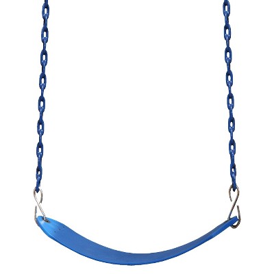 Seat and plastic coated heavy duty chains allow your child to feel secure and comfortable and focus exclusively on having fun. Copoly deluxe residential belt seat with 56 soft grip chain. The swing belt with chain features a heavy duty swing.