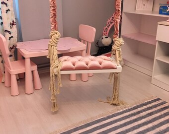 Indoor On Ropes Swing Porch Wood Swing For Toddler And Kids Etsy