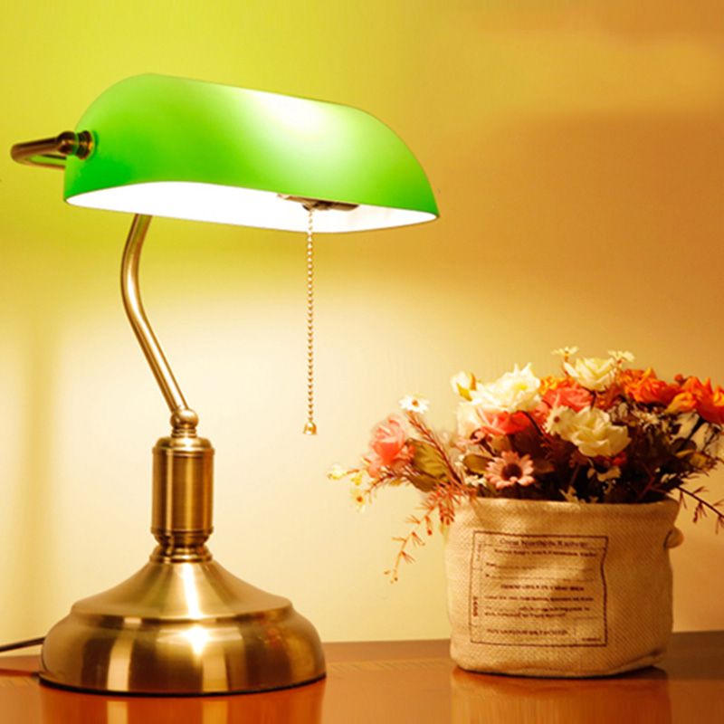 2020 Vintage Bank Table Lamps Retro Brass Bankers Lamp Green Glass