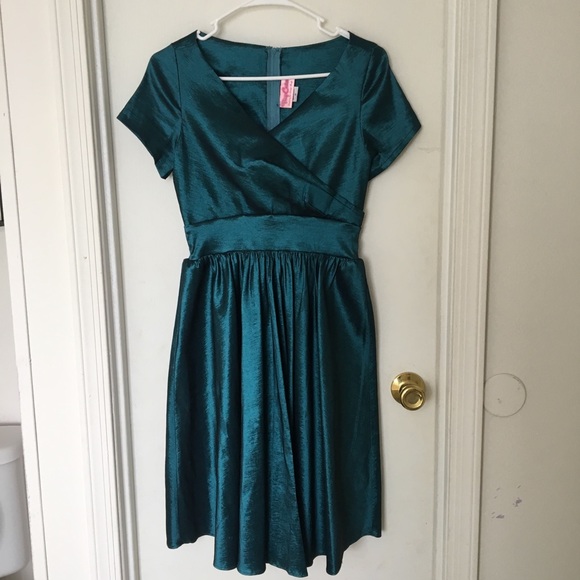 Pinup Couture Ava Swing Dress In Turquoise Taffeta Vintage