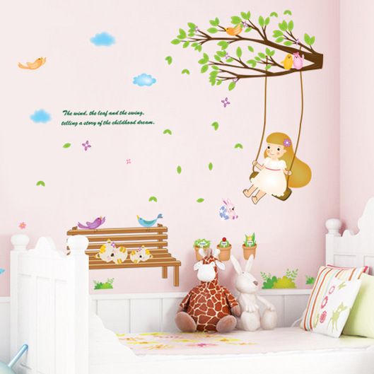 Little Girl Swing Pvc Wall Stickers Children Bedroom Sitting Room