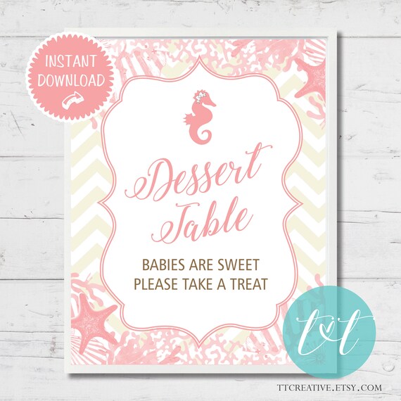Beach Baby Shower Dessert Table Sign 8x10 Pink Etsy