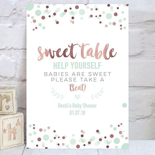 Personalised Baby Shower Sweet Table Sign In Rose Gold Effect And