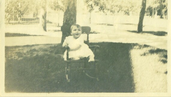 1916 Happy Baby Sitting In Rocking Chair Outside Girl Dress Etsy