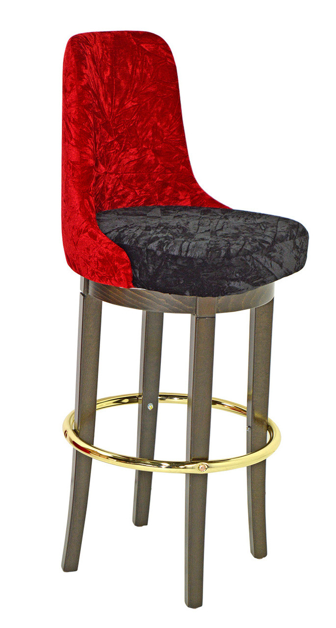 Bar Stool In Two Tone Upholstery Dark Walnut Base And Gold Round