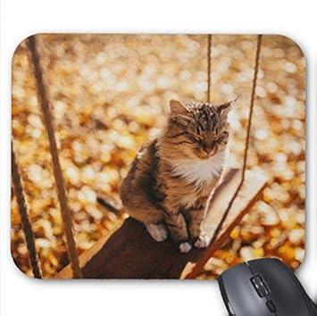 Mousepad Cat On The Swing Golden Background Amazon Com