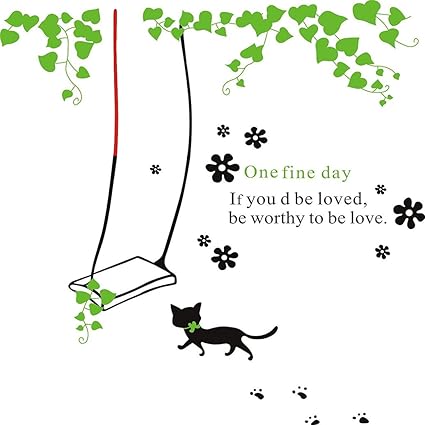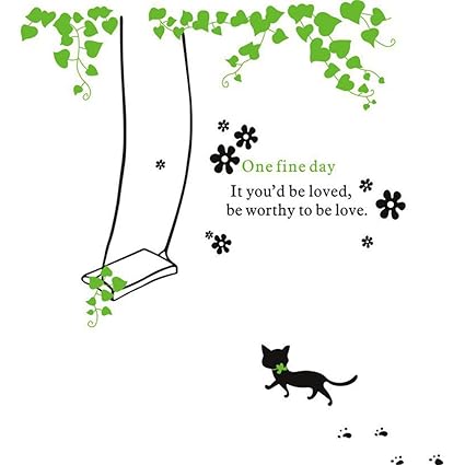 Qoo10 Green Swing Cat Room Background Wall Stickers Can Remove