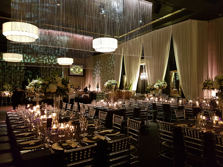 Black White Wedding Ballroom Reception With Round Tables And