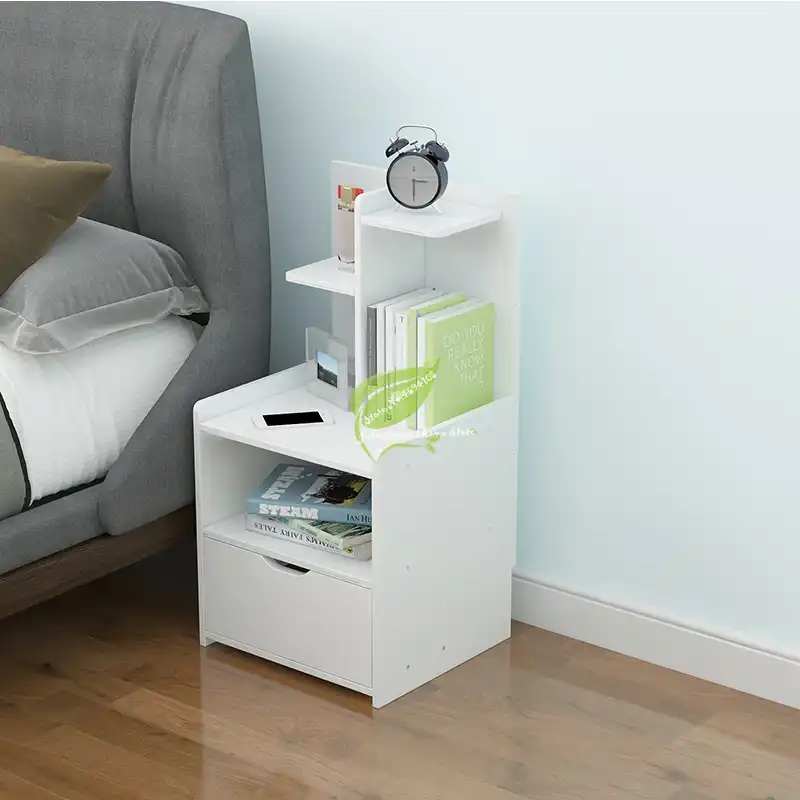 White 1 Drawer 3 Layer Wooden Bedroom Bedside Table Cabinet