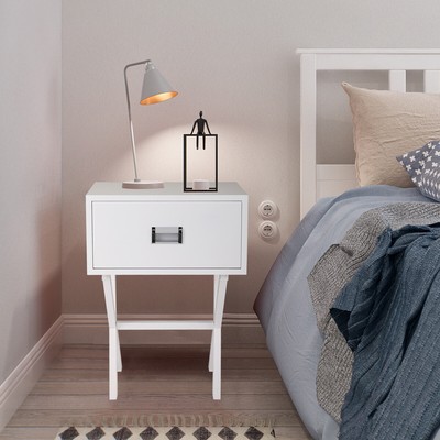White Finish Nightstand 1 Drawer Bedside Table Shelf Bedroom End