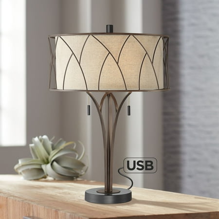 Franklin Iron Works Mid Century Modern Table Lamp With Usb