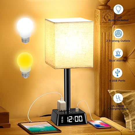Table Lamp Bedside Table Lamps With 4 Usb Ports And Ac Power