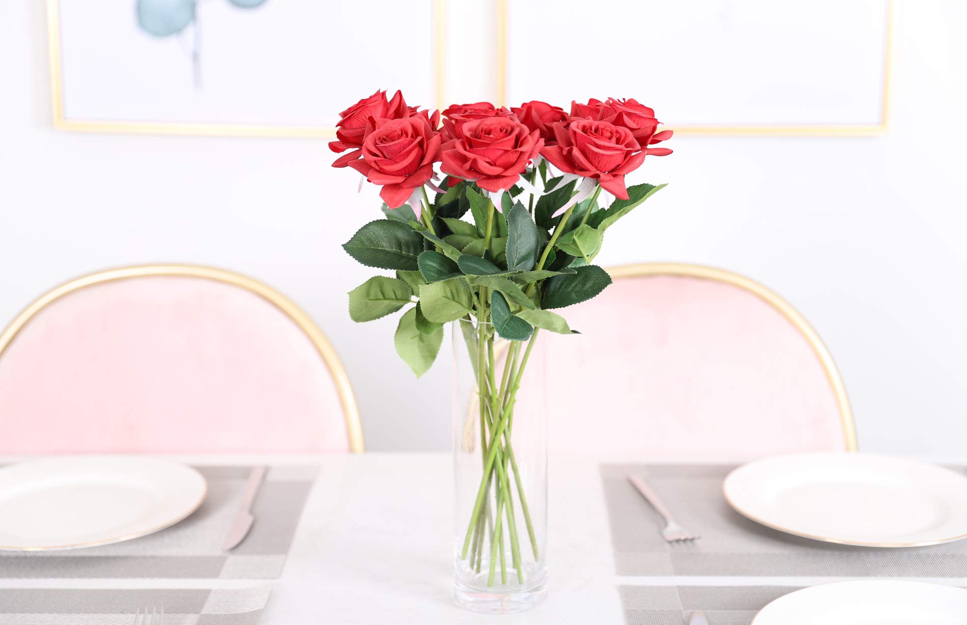 Duovlo Artificial Flower Rose Real Touch Long Stem For Wedding